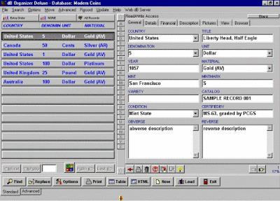 Coin Organizer Deluxe is a Windows software for coin collectors, hobbyists, dealers, and clubs. The software helps you to organize, catalog, and manage all coin related data. For the database novice, Coin Organizer's intuitive interface and ready-to-use coin inventory solutions make it easy to set up and use.